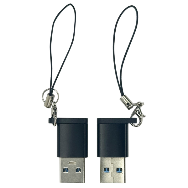 USB 3.0 to USB-C adapter with 5Gbps super-speed data transfer, compatible with laptops, iPhone 15, and car use. Features a reversible USB-C port, keyring eyelet for hanging, and a sleek black finish. Capacity: 32|64 GB