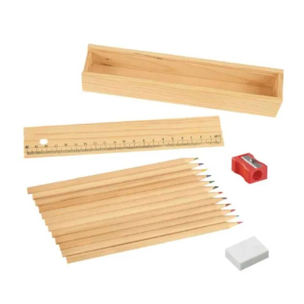 Colored Pencils Set with eraser and sharpener in wooden box