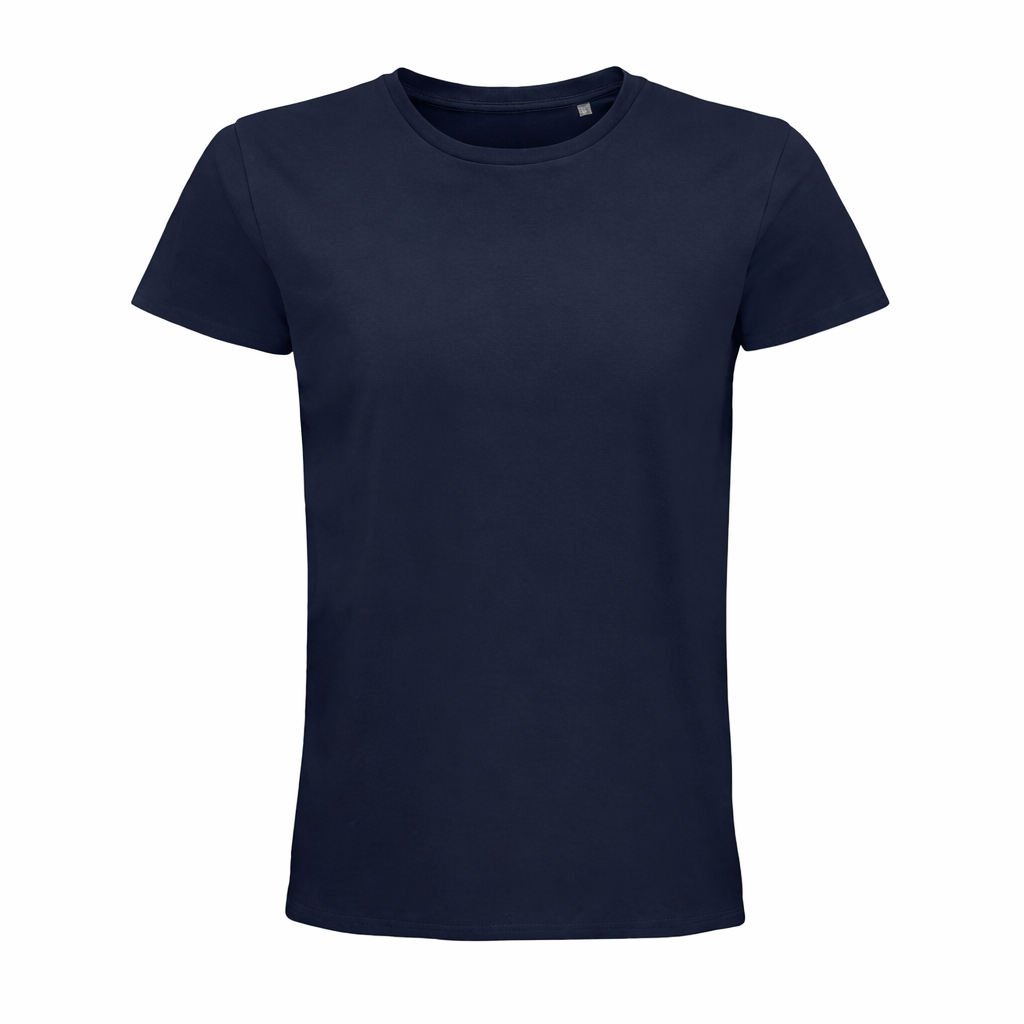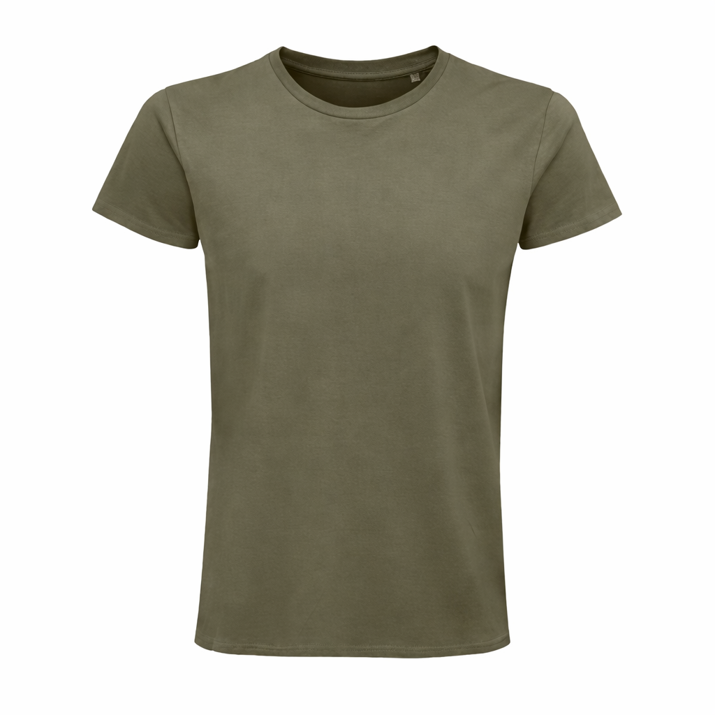 Men’s fitted round-neck jersey t-shirt made from organically grown cotton with a soft natural finish, ribbed collar, tubular fit, and neck tape.